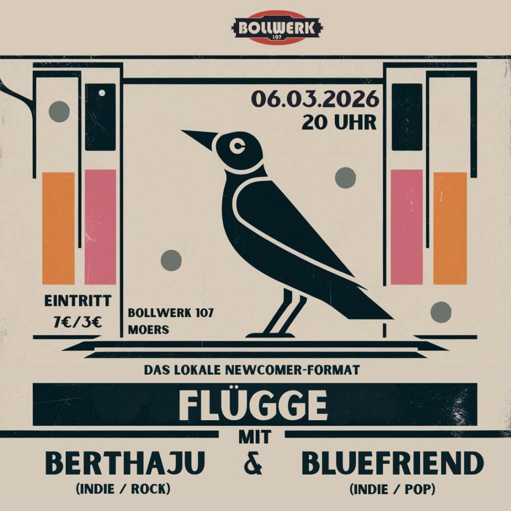Erlebt die musikalische Energie der Region bei “Flügge”, der neuen Konzertreihe bei uns im Bollwerk 107! Lokale Rock- und Pop-Bands, teilweise bereits bekannt vom Rock-it Festival und dem Clash of Bands, präsentieren ihr Talent und begeistern das Publikum mit dem unverwechselbaren Sound ihrer selbst geschriebenen Songs. “Flügge” steht für musikalische Vielfalt und die Chance, neue […]